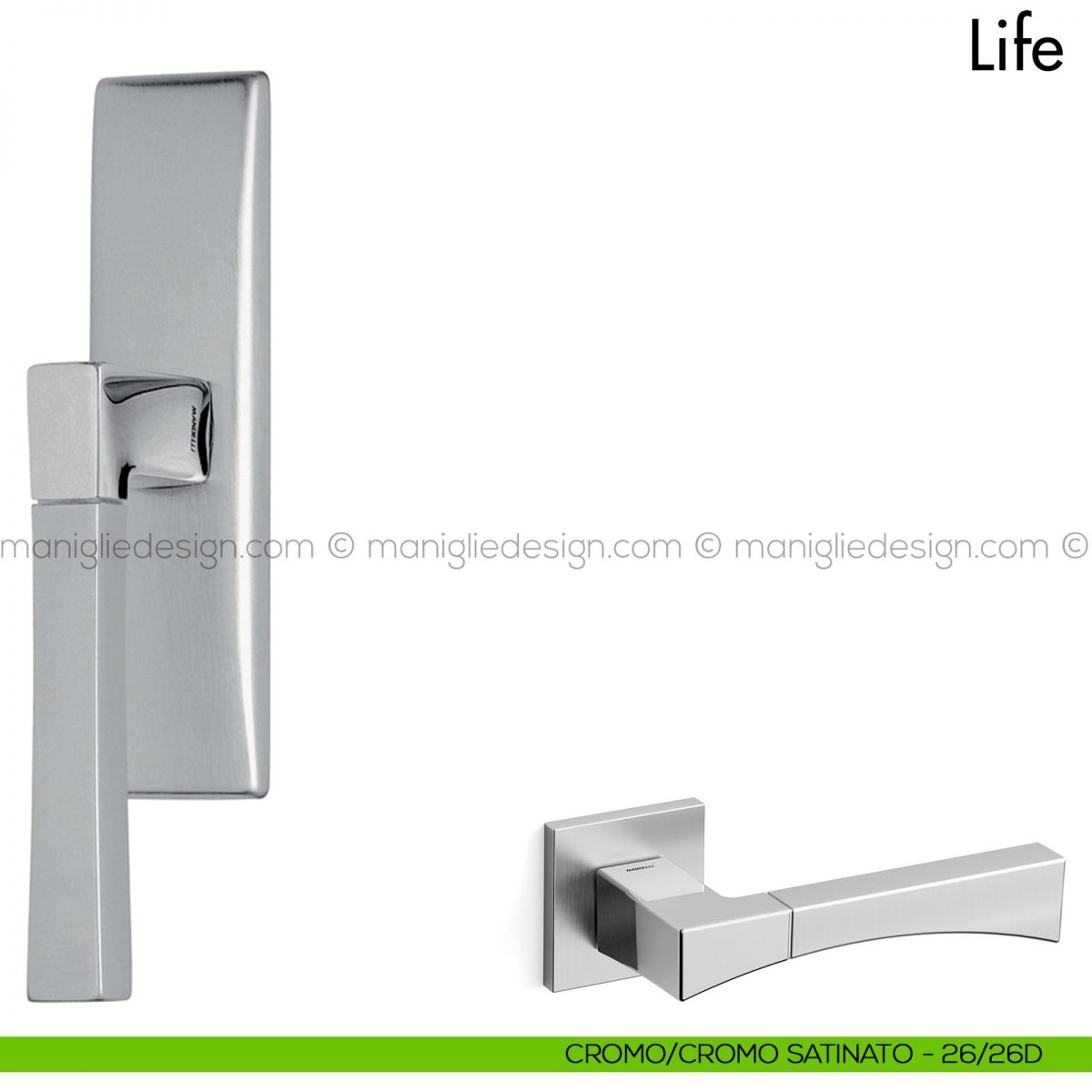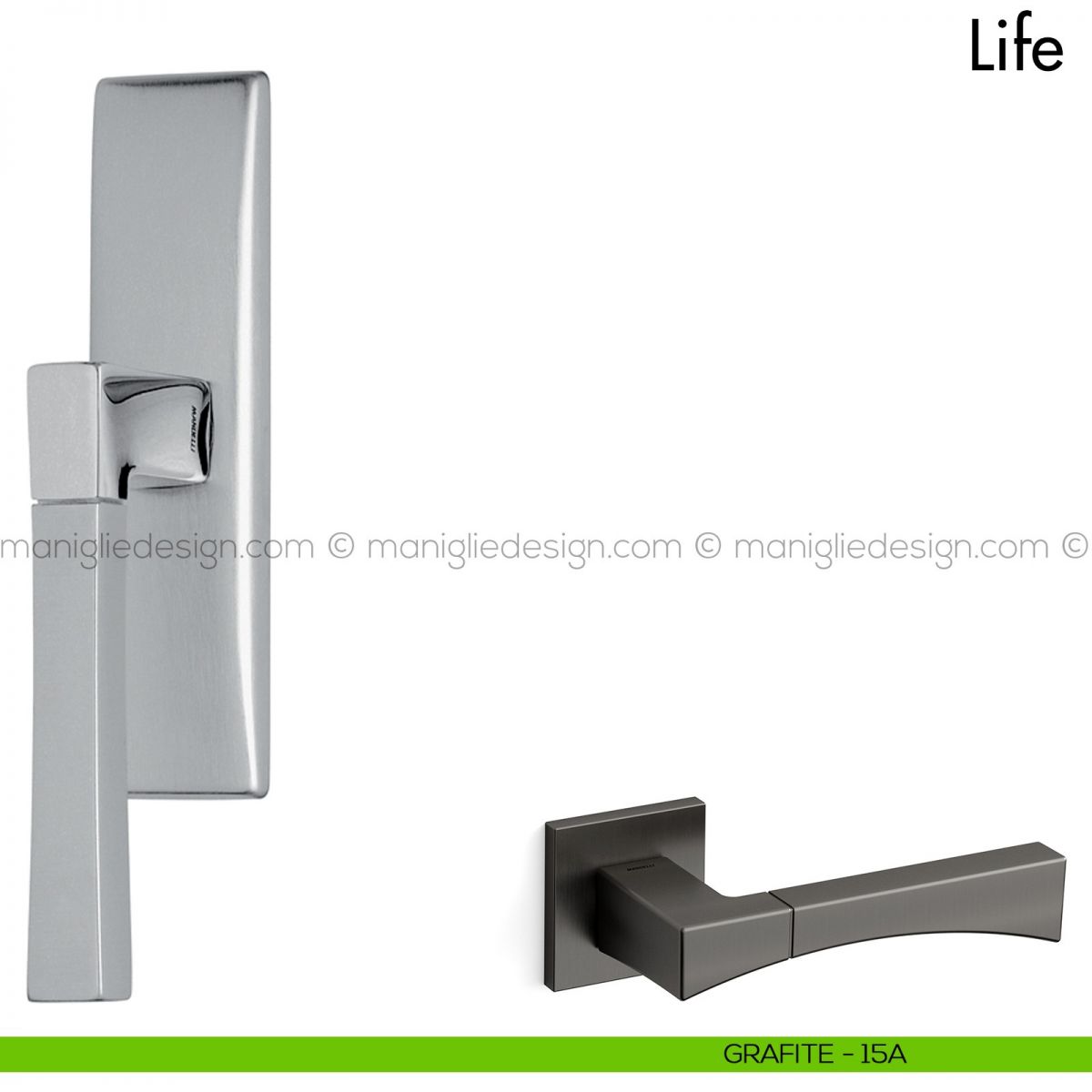Life Mandelli viene proposta anche nella variante maniglia per porta interna e martellina dk per finestra. Scopri tutte le versione della maniglia Life per completare con stile il tuo arredamento.
