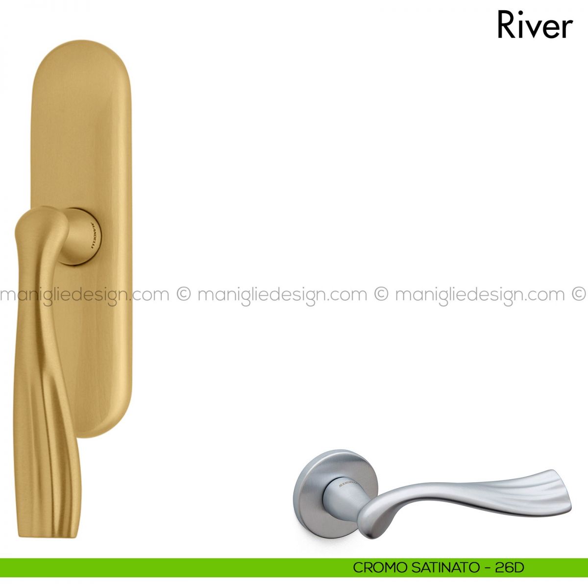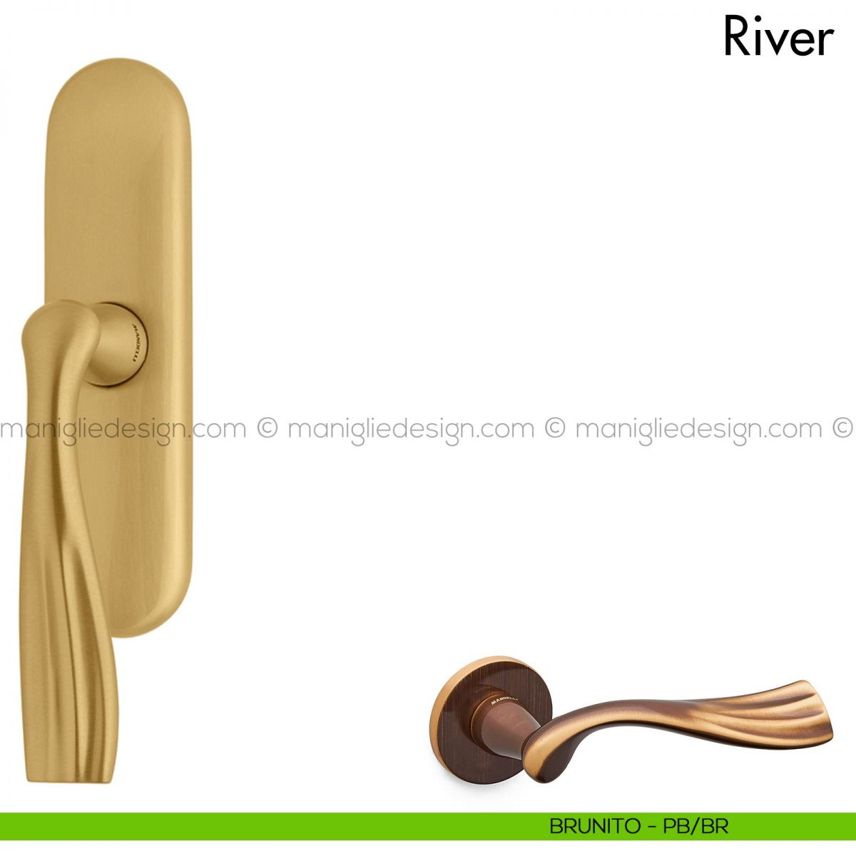 Officine Mandelli presta particolare attenzione alla ricerca e allo sviluppo dei propri prodotti. Con questa filosofia di progetto nasce River, una maniglia classica disegnata dal centro stile Mandelli. La maniglia per finestra River appartiene alla linea di maniglie in ottone, un modello adatto ad essere inserito in arredamenti classici di forte personalità.