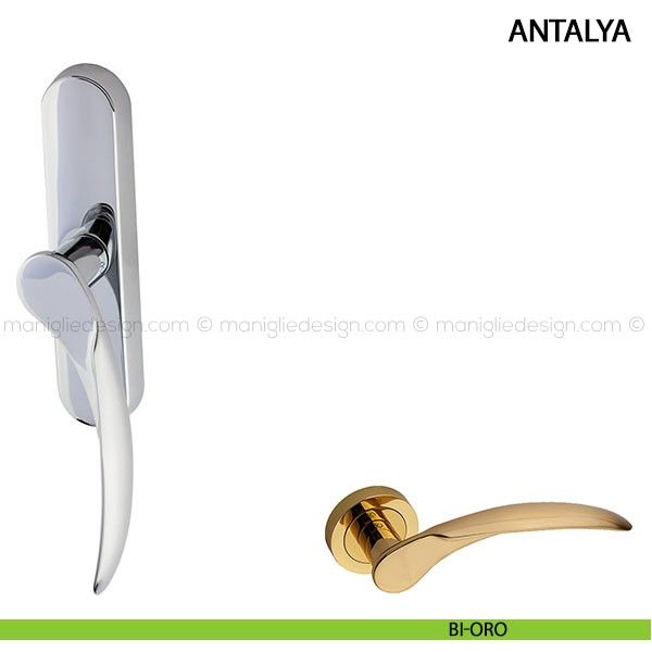 Vivacità ed eleganza insieme, con semplicità, una coniugazione che non si ottiene tutti i giorni, una ricerca nelle infinite possibilità della geometria coronata da un risultato vincente, plastico, scultoreo. La maniglia Antalya esprime l'intreccio, la fusione di materia e movimento, con la discrezione di chi ha personalità forte, non ostentata. Antalya è una maniglia in ottone pressofuso nelle finiture ottone lucido verniciato o cromato lucido.