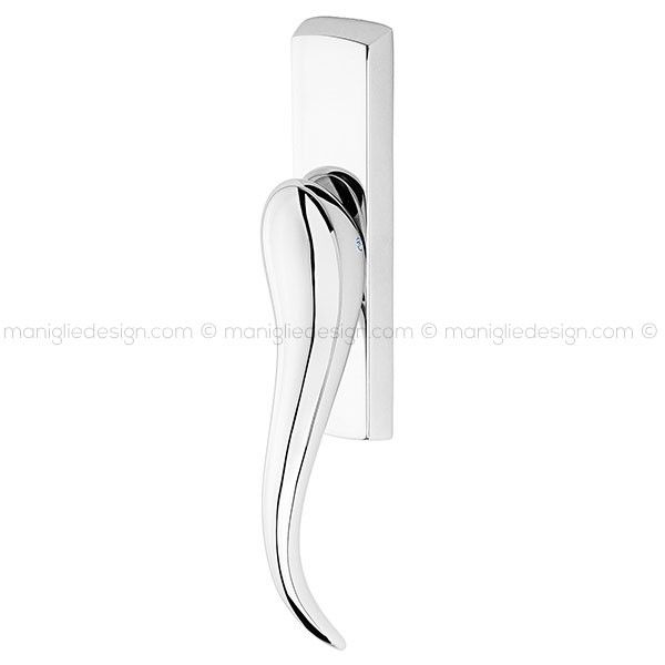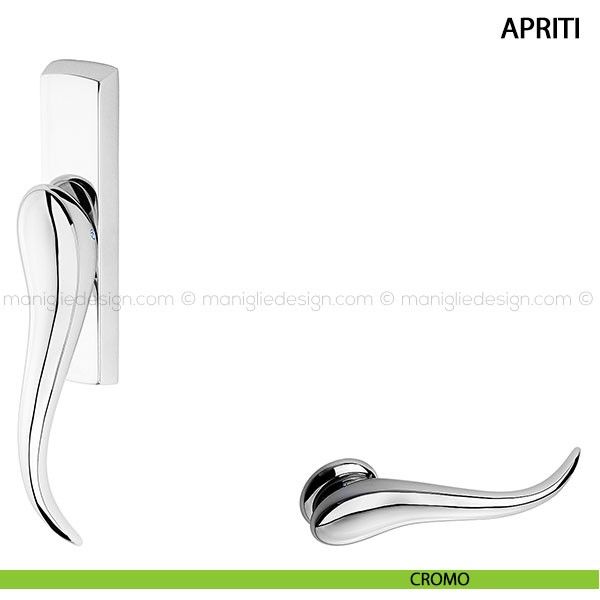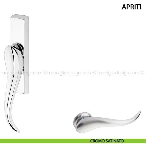 Philippe Starck scherza con i sogni e le paure, due linee inarcate che convergono in forma sorprendentemente sensuale, tecnica e lieve, nella citazione del cornetto napoletano. Apriti è una maniglia in alluminio pressofuso nelle finiture cromo satinato o cromato lucido.
