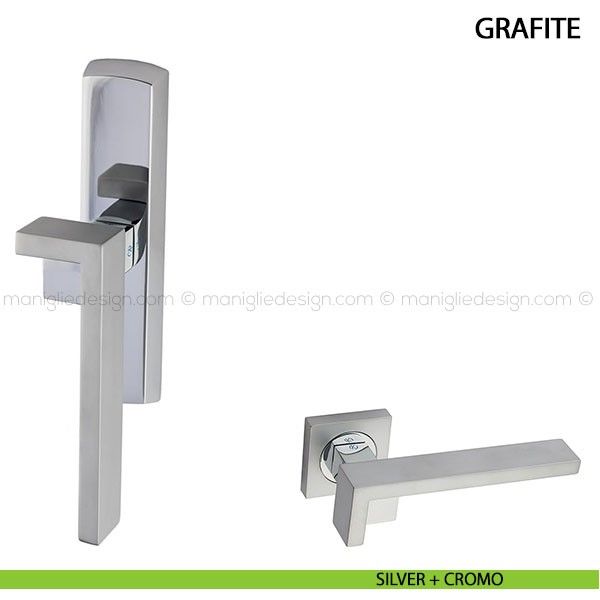 Un insieme intelligente di forme geometriche ben definite fornisce un quadro perfetto. Infatti, alza il perno quadro avanti in cromo, che tende, per rispecchiare la leva con le forme rettangolari e allungate. Grafite è una maniglia bicolore nelle finiture cromo lucido e silver.
