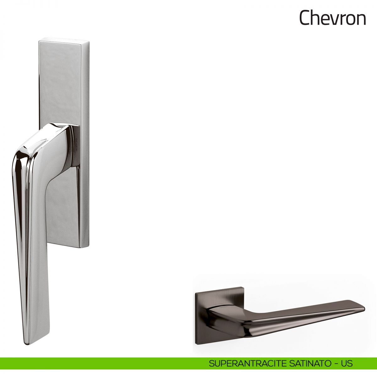 Zaha Hadid trae ispirazione per la maniglia Chevron dal suo primo progetto a New York. La maniglia per finestra Olivari ricorda infatti l'elemento scultoreo che caratterizza la facciata del palazzo, il design della maniglia è una forma vigorosa accentuata da curve morbide che seguono la stessa ricerca sperimentale della struttura dinamica e innovativa tipica di ogni progetto di Hadid. Chiaramente riconducibile agli elementi di architettura in sviluppo orizzontale e di simmetria dell'edificio di New York, il corpo della maniglia per serramenti prende una potente forma ricurva, che migliora l'ergonomica relazione tra la mano e l'oggetto, ottimizzandola attraverso una serie di intagli delicati.