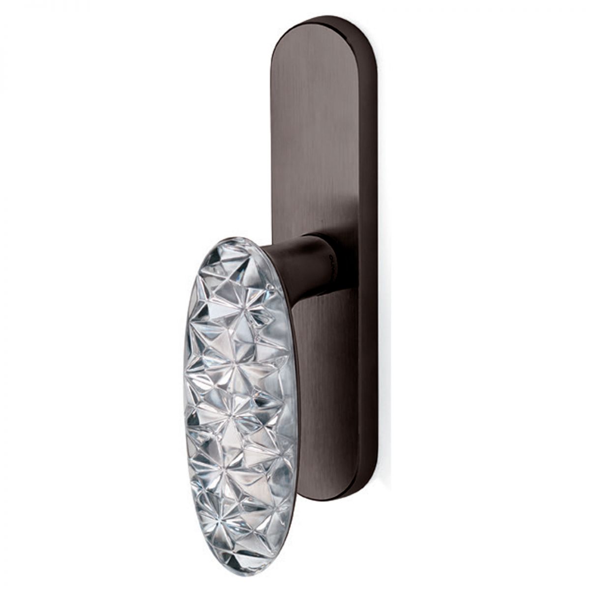 La maniglia Crystal di Marcel Wanders è una sorta di compendio della storia e dell'abilità artigianale, maturata dall'azienda Olivari in oltre 100 anni di storia. Una luminosa e scintillante continuità della combinazione di minimalismo e classicismo evocati anche da altri modelli del Designer. Divisa in due parti, una in ottone e l'altra, frontale, in cristallo, ci consente di intravedere - attraverso il cristallo - il decoro riflesso sull'ottone. E' il prezioso gioiello della porta, che è un piacere osservare e tenere in mano nell'atto di passare oltre, verso un interno pieno di sorprese. Crystal Olivari è un tocco decorativo e raffinato che ridefinisce l'immagine stessa di una porta.