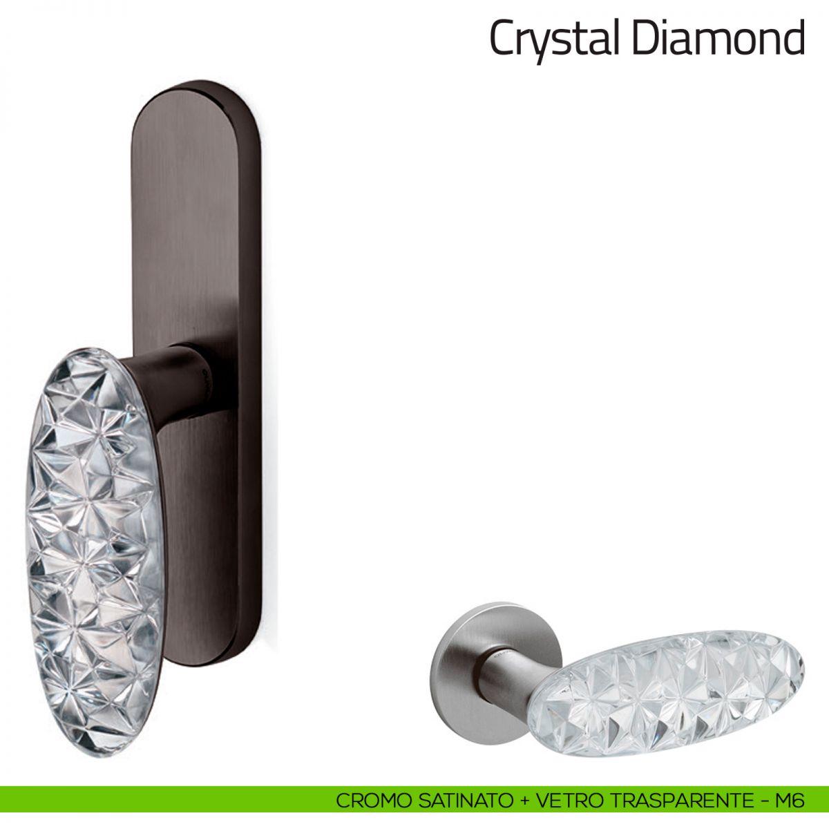 Maniglia per porta interna Crystal Diamond Olivari in vetro con rosetta e bocchetta tonda.