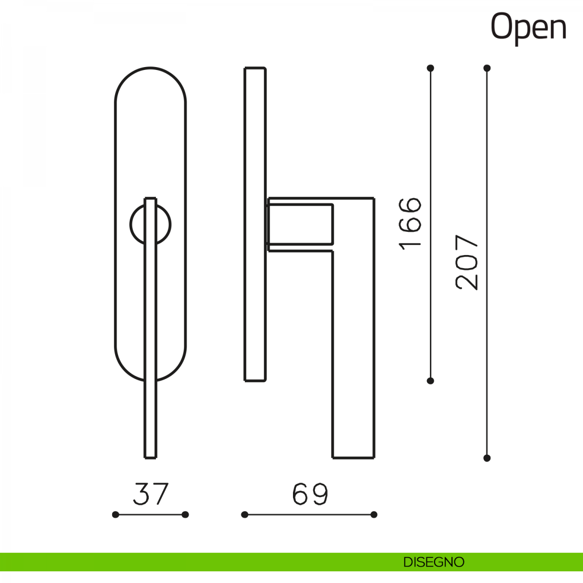 Maniglia per finestra martellina DK Open Olivari bassa.