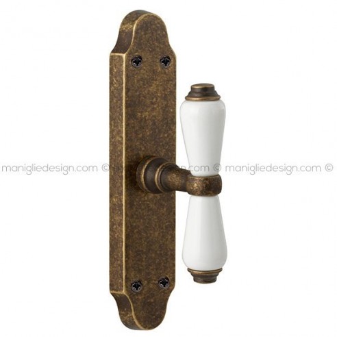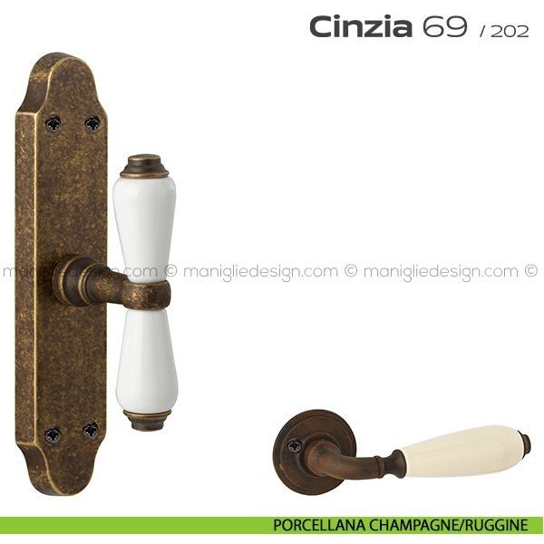 Maniglia in porcellana per porta interna con nottolino 069 Cinzia Reguitti con viti a vista, con rosetta.