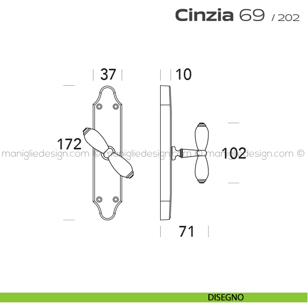 069 Cinzia Reguitti viene offerta anche nella variante maniglia per porta. Scopri la gamma completa Reguitti 069 Cinzia per completare con stile il tuo arredamento.