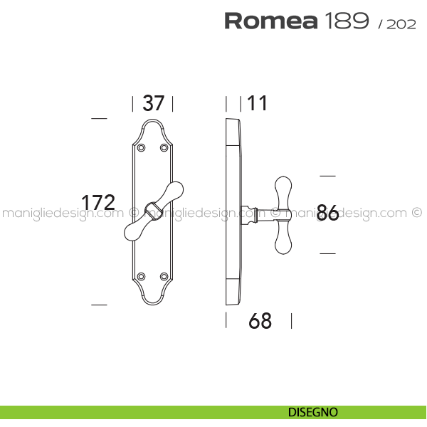 189 Romea Reguitti viene offerta anche nella variante maniglia per porta. Scopri la gamma completa Reguitti 189 Romea per completare con stile il tuo arredamento.