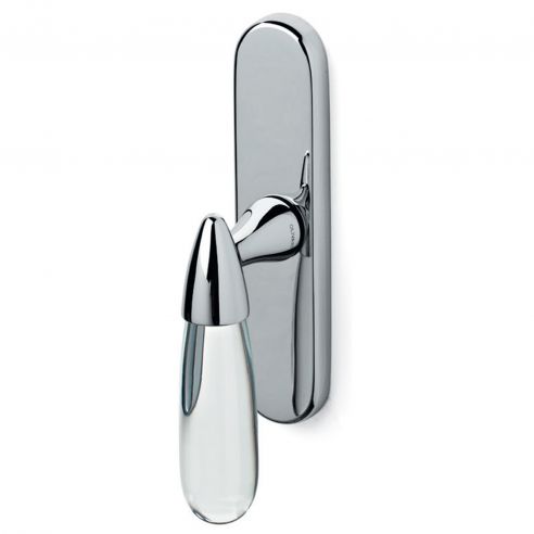 Maniglia in vetro per finestra cremonese Aurora Olivari. Design by Alessandro Mendini.
