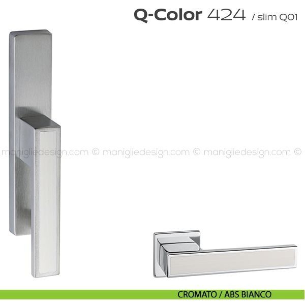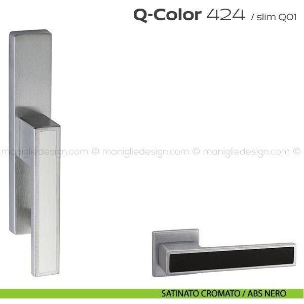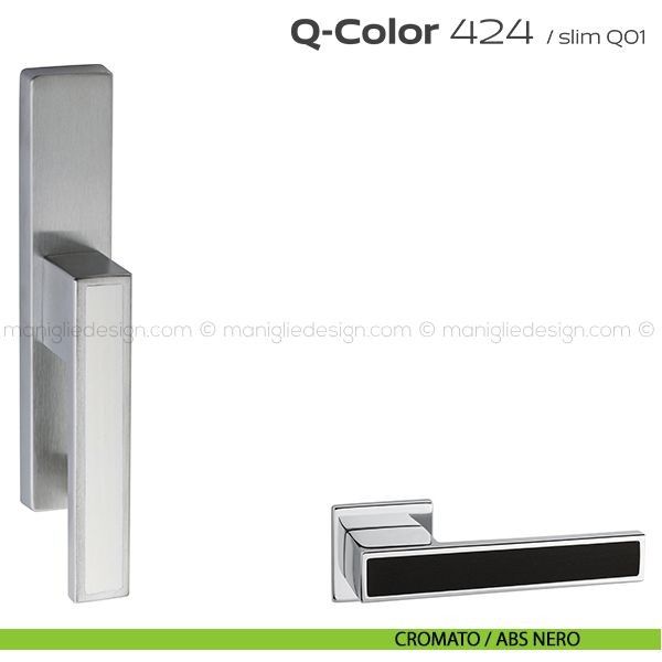Lo studio di progettazione interno all'azienda Reguitti progetta una nuova serie di maniglie per finestre chiamata 424 Q-Color Reguitti. Sicura nella presa, leggera nei volumi, raffinata nell'abbinamento tra inserti in ABS di colore diverso, Q-Color rappresenta un piacevole connubio fra robustezza e creatività. Capace di inserirsi con carattere e personalità sulle superfici di porte dal design moderno abbinando la cromaticità dell'inserto al colore della porta.