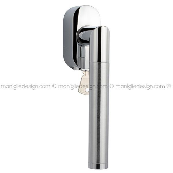 Maniglia per finestra martellina DK con chiave su placca 140 L-Plus Reguitti. Design by Studio Reguitti.