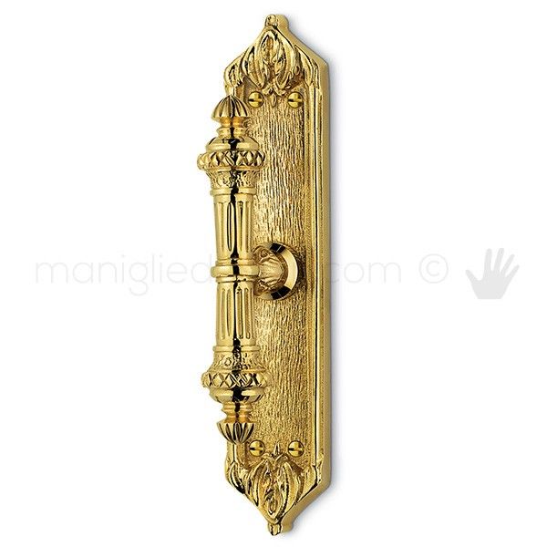 Maniglione per porta Impero Antologhia zancato completo di accessori per il fissaggio passante singolo con copridadi interni.