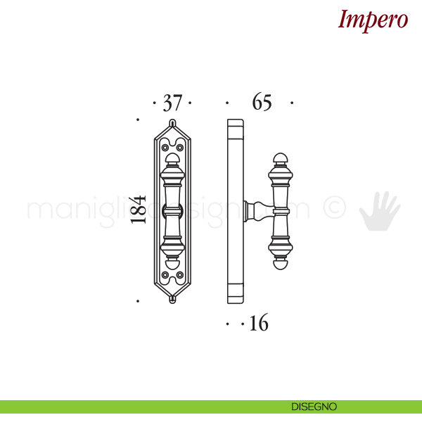 Impero Antologhia viene proposta anche nella variante maniglia per porta interna e martellina DK per finestra. Scopri tutte le versione della maniglia Impero Antologhia per completare con stile il tuo arredamento.