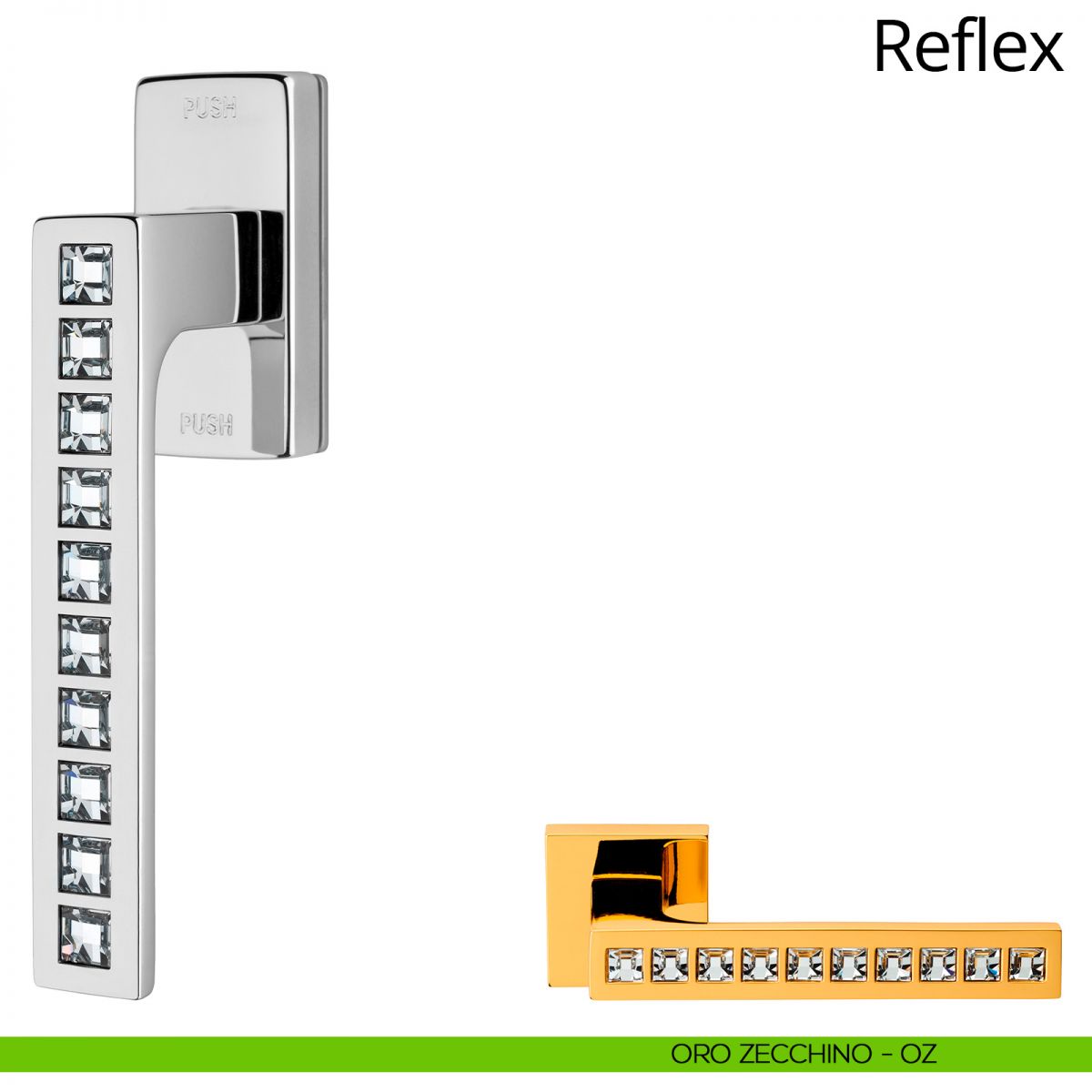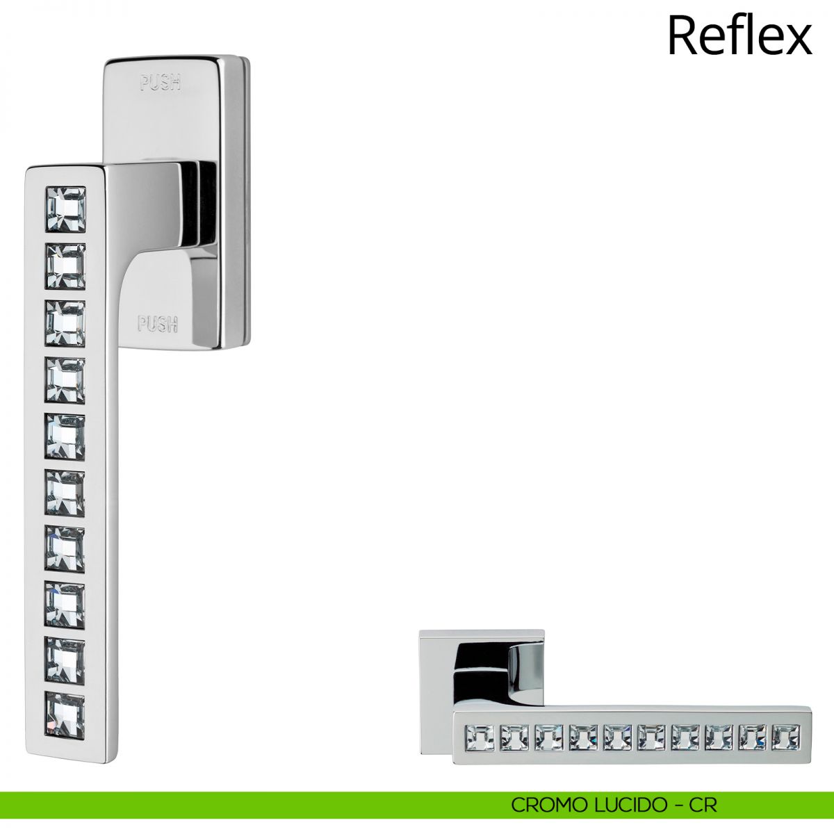 La collezione di maniglie per porte e finestre Reflex impreziosita da cristalli Swarovski® è, a distanza di anni dal lancio, una delle più copiate al mondo. La sua linea moderna e contemporanea, facilmente adattabile a qualsiasi tipologia di ambiente, è stata infatti scimmiottata in ogni dettaglio. L’originale resta comunque inimitabile e facilmente riconoscibile grazie alle proporzioni armoniche e al taglio dei cristalli Swarovski®, rigorosamente originali, studiato appositamente per esaltarne i riflessi. Così Reflex, nonostante il tempo che passa, continua a brillare sempre più. La collezione di maniglie per porte e finestre Reflex impreziosita da cristalli Swarovski® è, a distanza di anni dal lancio, una delle più copiate al mondo. La sua linea moderna e contemporanea, facilmente adattabile a qualsiasi tipologia di ambiente, è stata infatti scimmiottata in ogni dettaglio.