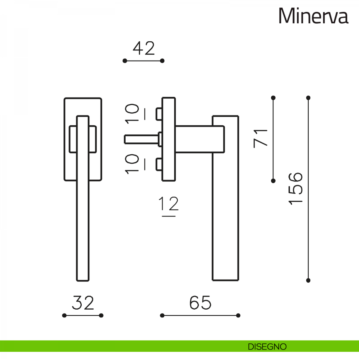 Maniglia per finestra martellina DK Minerva Olivari. Design by Franco Sargiani.