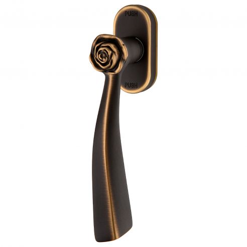 Gli amanti dello stile Shabby-chic rimarranno colpiti da questa collezione di maniglie per porte e finestre soprannominata Rose; contraddistinta una piccolissima rosa Bonica posta sul gambo all’inizio dell’impugnatura, Rose è una fra le collezioni di maniglie più indicata per questa particolare tipologia di arredo. Lo stile shabby-chic, il cui termine fu coniato dalla rivista The World of Interiors nel 1980, è una forma d’interior design influenzata da culture mediterranee (la Provenza, la Toscana e la Grecia in primis) per le quali i mobili e arredi appaiono vecchi e sbiaditi; questo particolare effetto è ottenuto colorando di tinte pastello gli arredi e sottoponendoli in seguito a un particolare trattamento di levigatura che consente al materiale sottostante di emergere, simulando così i segni di usura dati dal tempo. La collezione di maniglie per porte e finestre Rose è disponibile, oltre al classico bronzo opaco, in alcune particolari finiture volte a enfatizzare ulteriormente questo sapore di “vissuto” rendendola un ottimo complemento per questa tipologia di arredi.