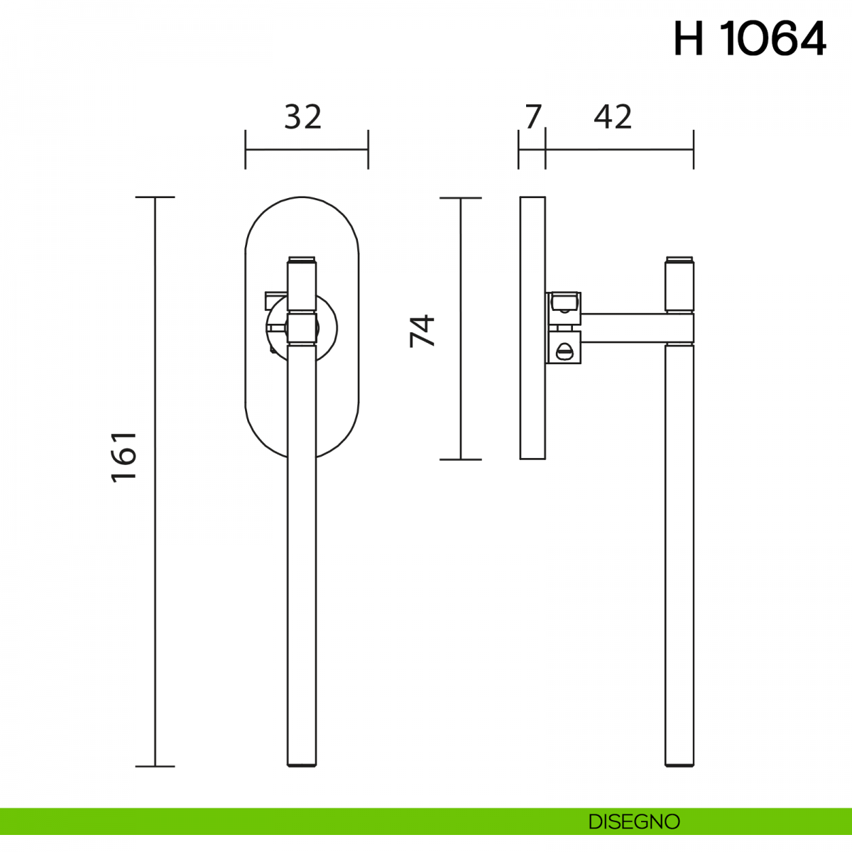 Maniglia per finestra martellina DK H 1064 Valli collezione Lab con rosetta fine