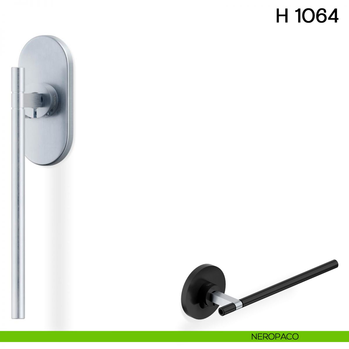 Maniglia per finestra martellina DK H 1064 Valli collezione Lab con rosetta e bocchetta tonda fine. Design by Valli Workshop.