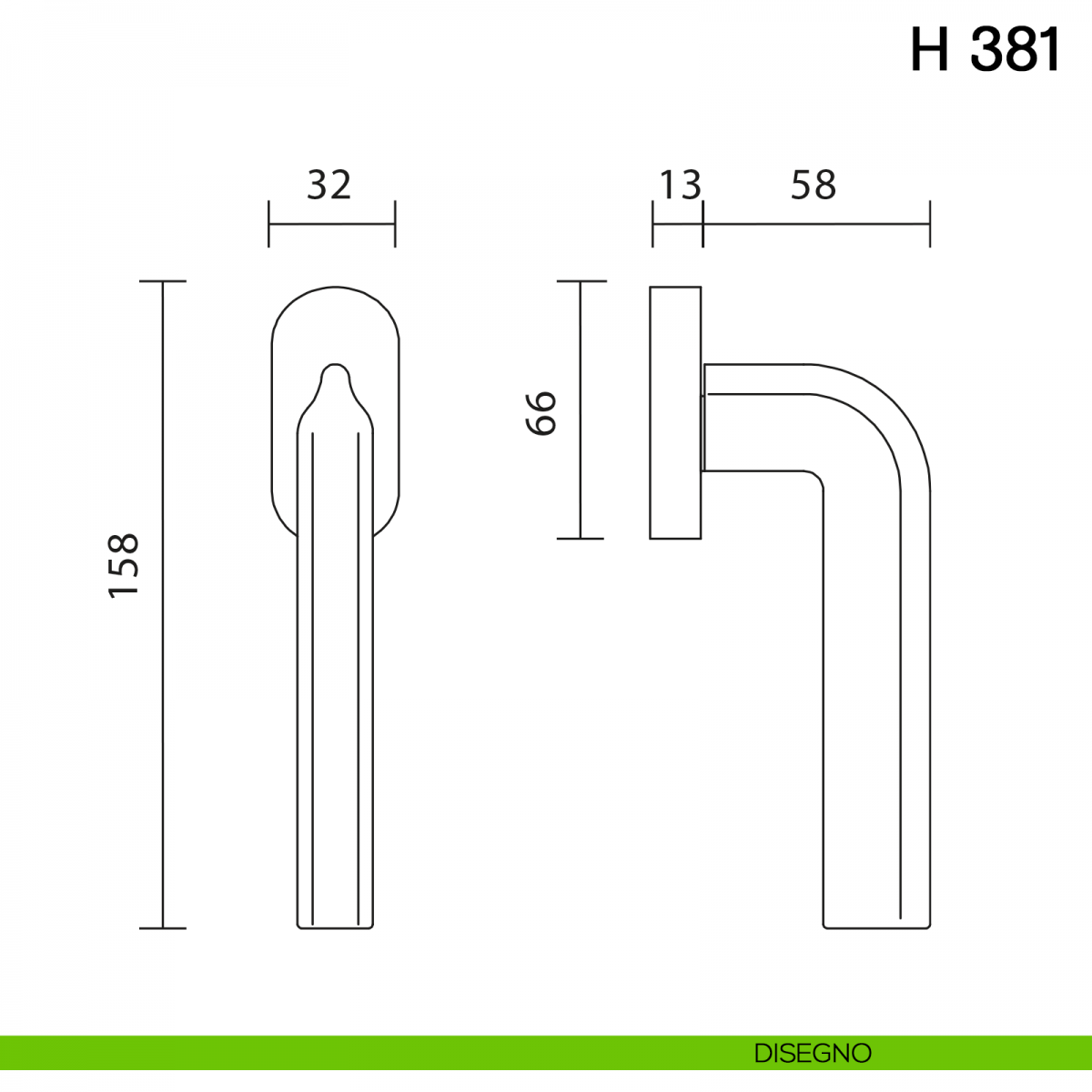 Maniglia per finestra martellina DK H 381 Valli collezione Fusital.