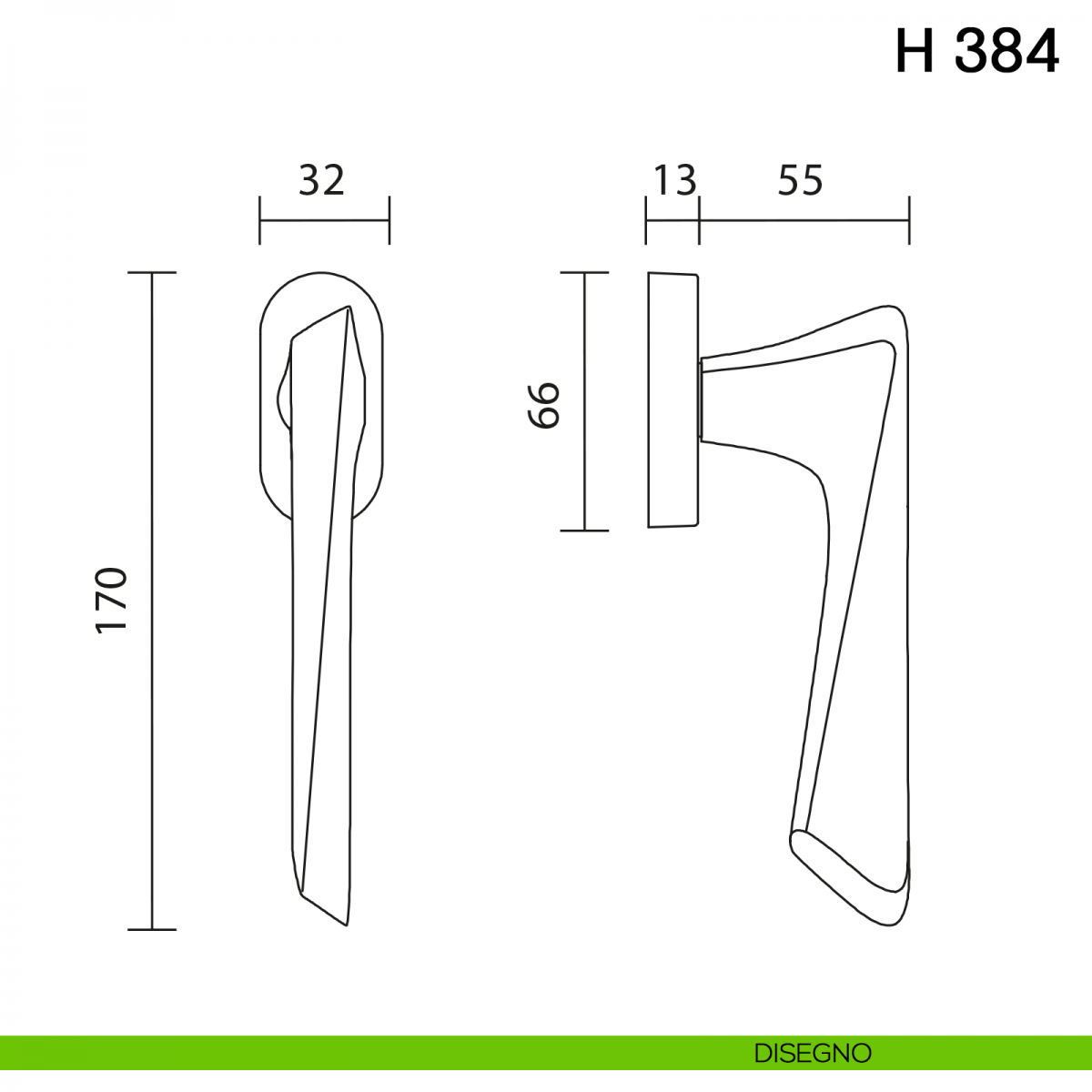 Maniglia per finestra martellina DK H 384 Valli collezione Fusital.