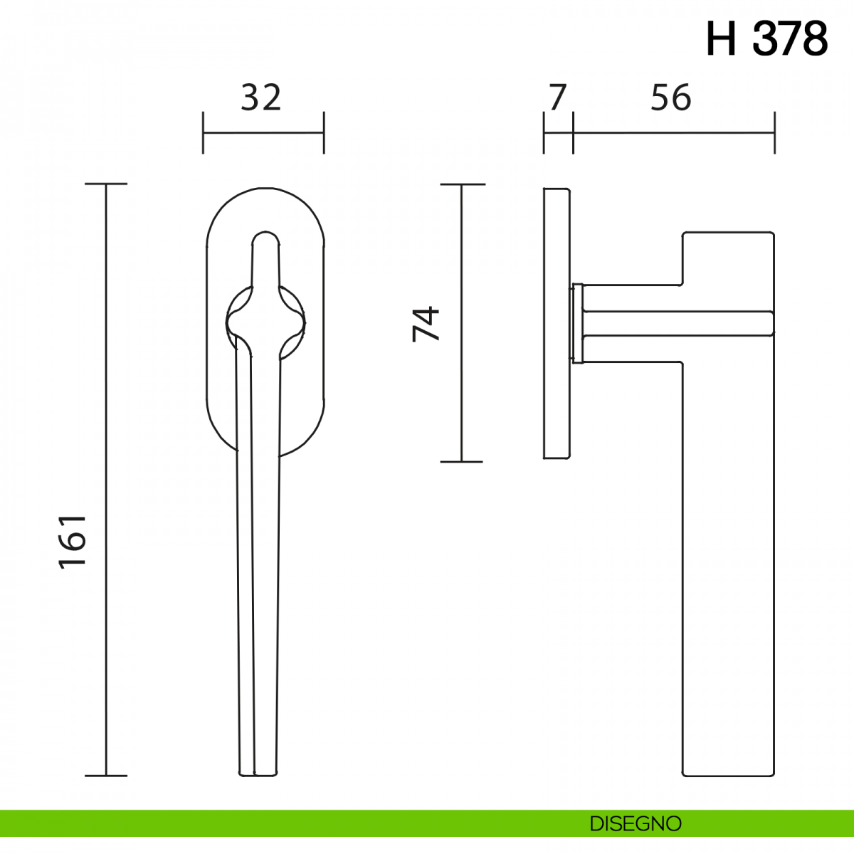Maniglia per finestra martellina DK H 378 Valli collezione Fusital