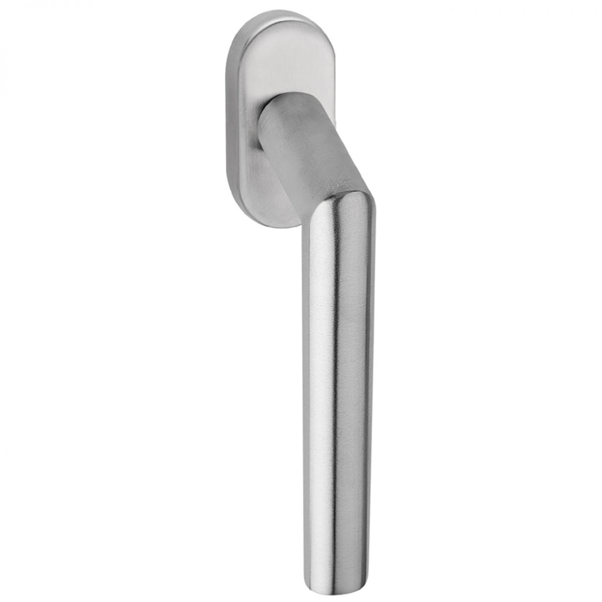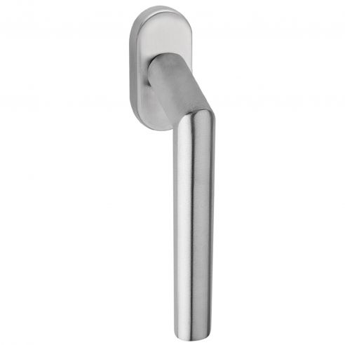 Maniglia zancata in acciaio per finestra martellina DK Olanda Fimet Inox con rosetta ovale. Design by Fimet Inox Project.