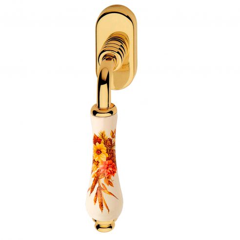 Maniglia con porcellana avorio fiorata per finestra martellina DK Dalia Linea Calì.