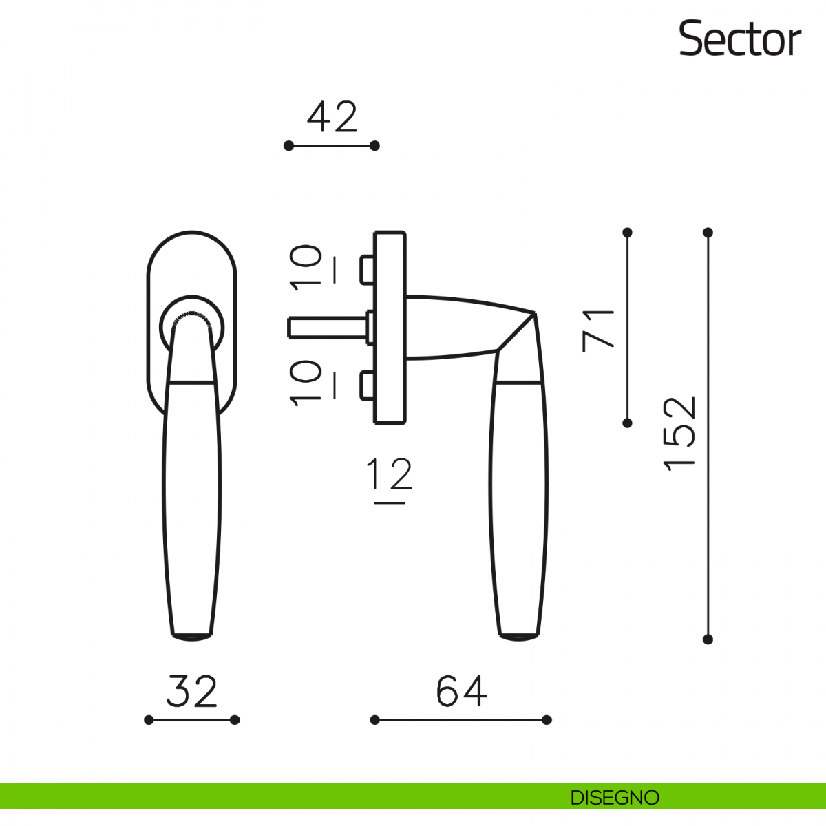 Maniglia per finestra martellina DK Sector Olivari. Design by Penta Associati.