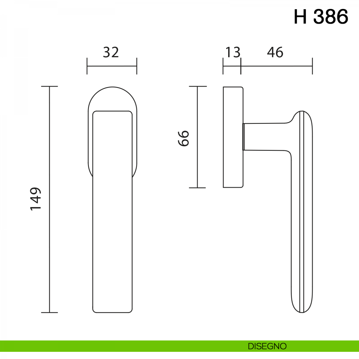 Maniglia per finestra martellina DK H 386 Valli collezione Fusital.