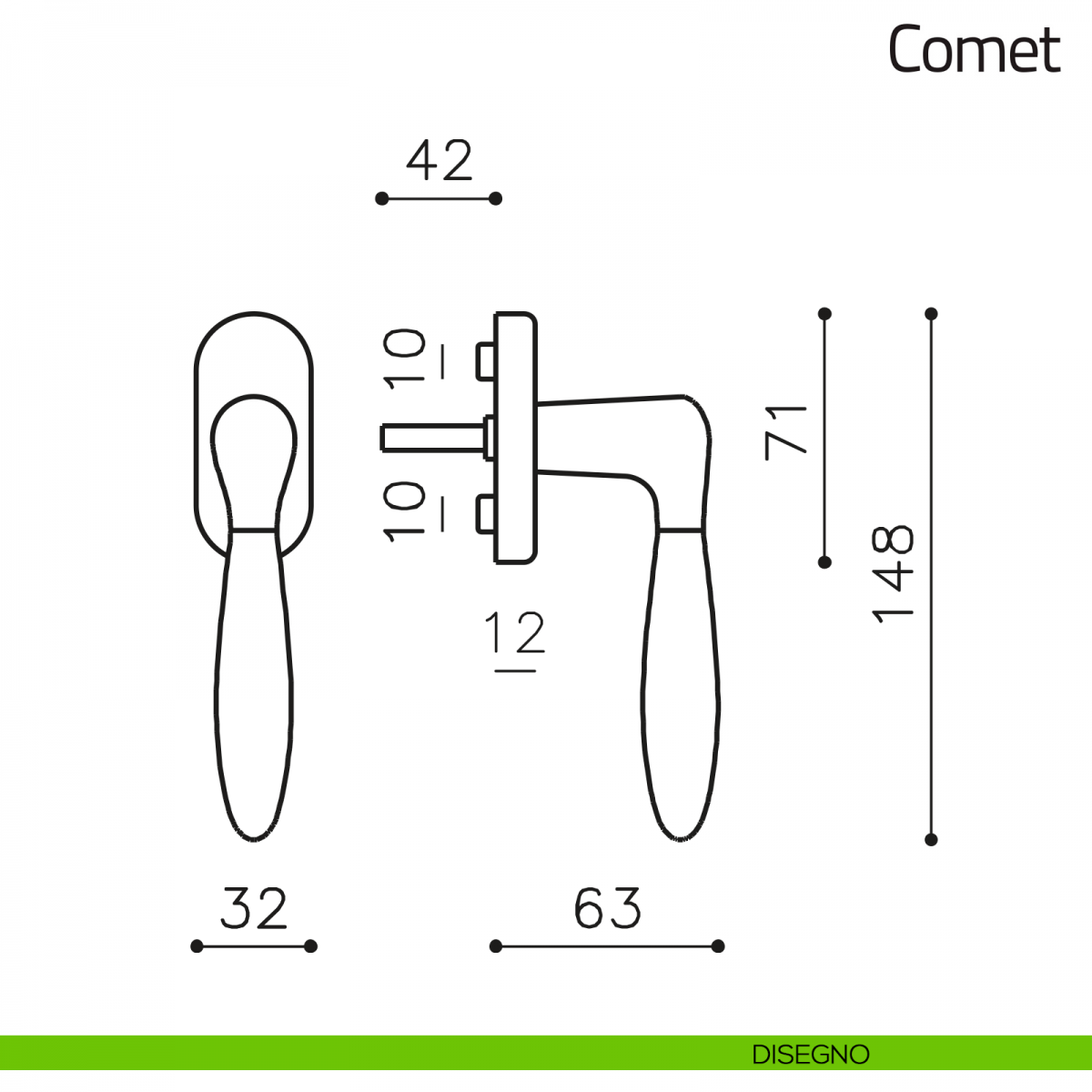 Maniglia per finestra martellina DK Comet Olivari. Design by Nicola Novelletto.