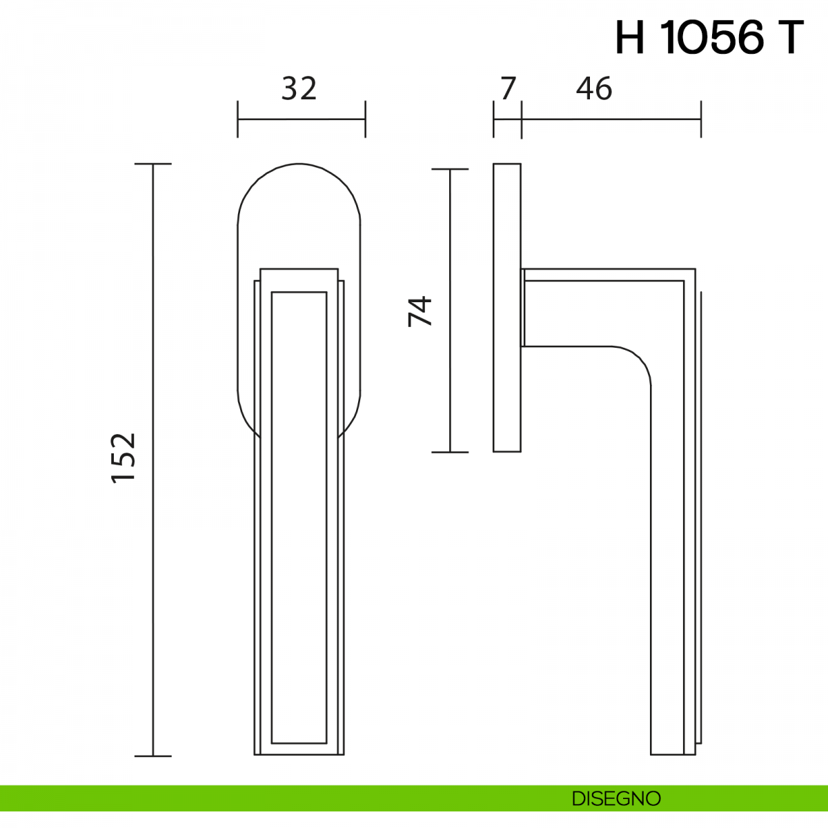Maniglia per finestra martellina DK H 1056 T Valli collezione Lab con rosetta fine. Design by Valli Workshop.