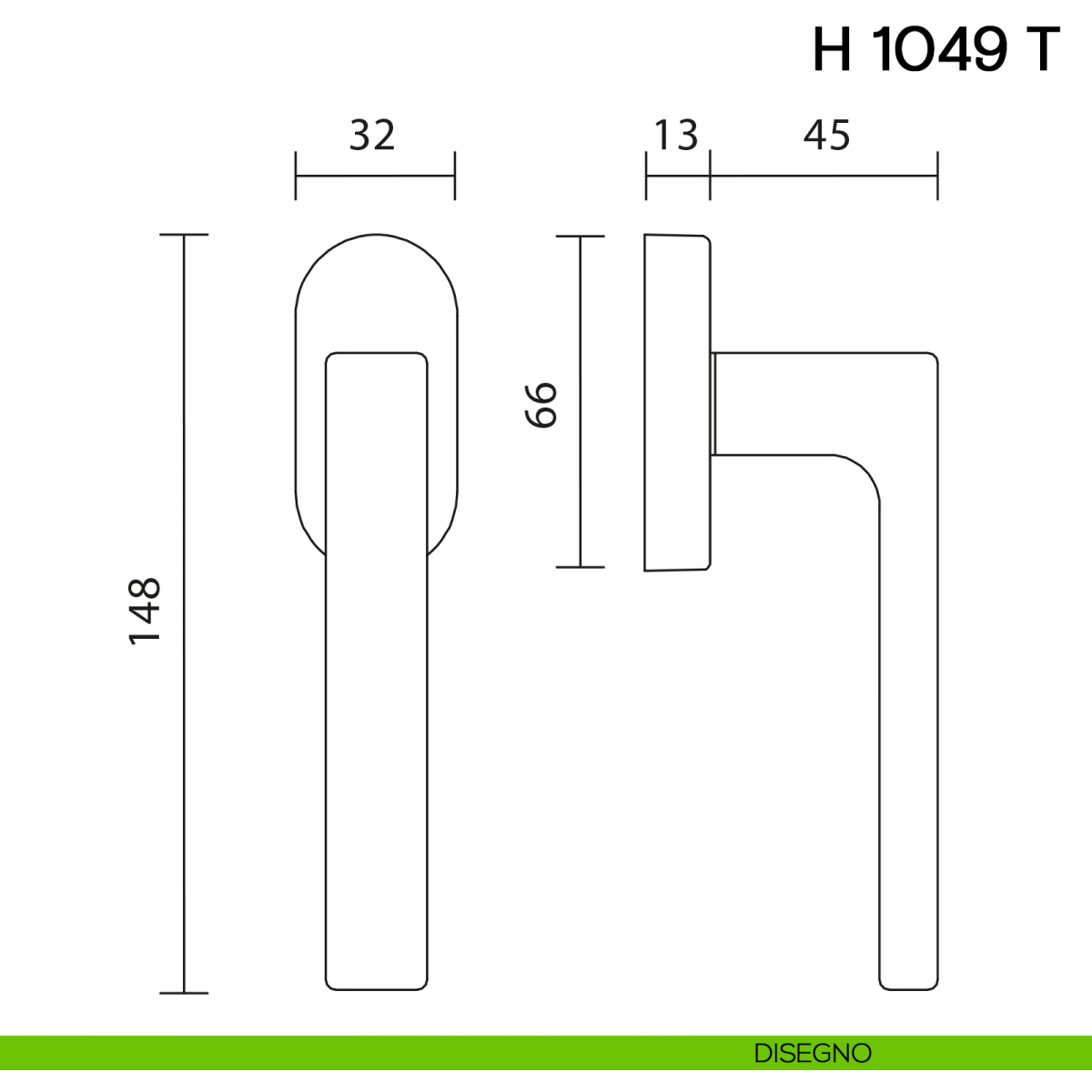 Maniglia per finestra martellina DK H 1049 T Valli collezione Lab