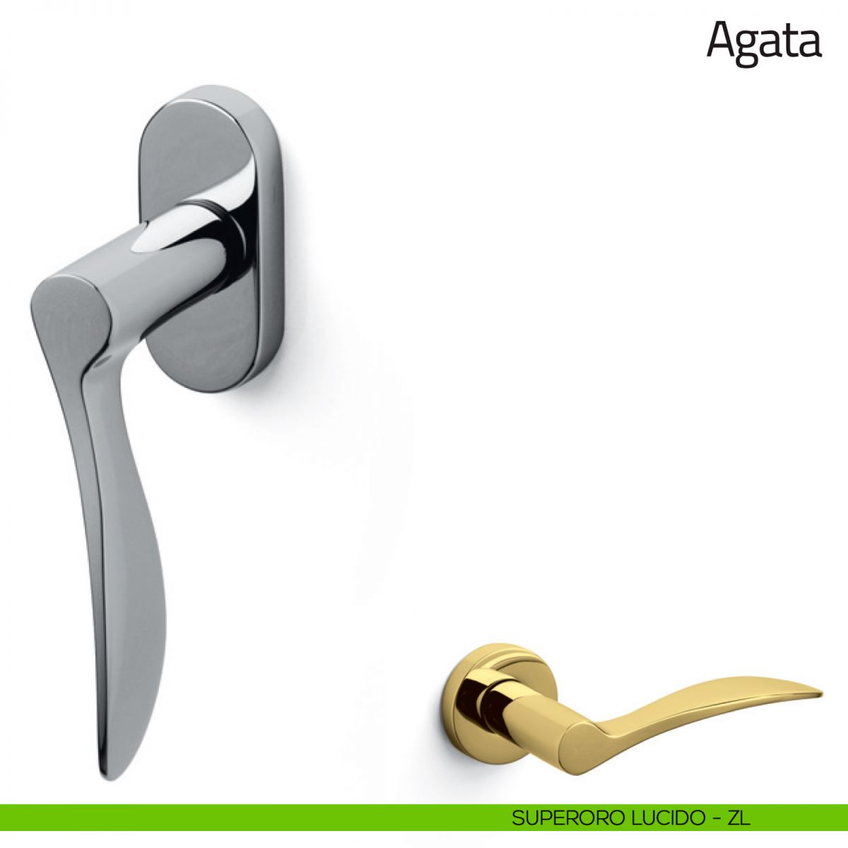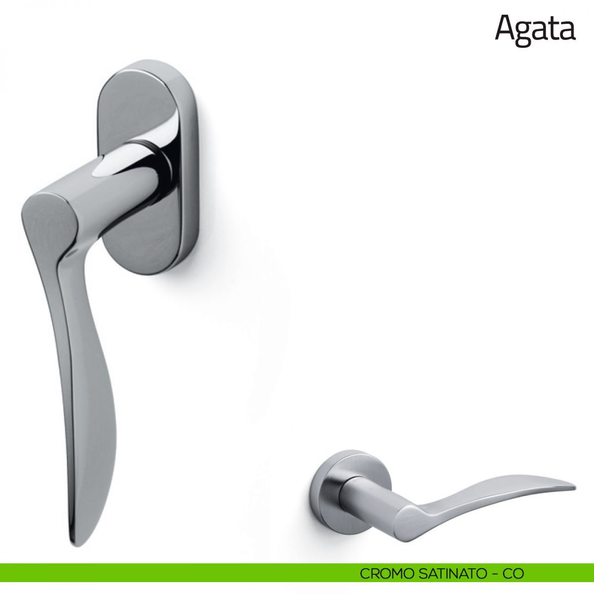 Agata Olivari viene offerta anche nella variante maniglia per porta e cremonese per finestra. Scopri la gamma completa della maniglia Olivari Agata per completare con stile il tuo arredamento.