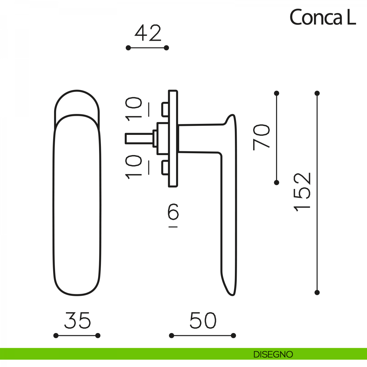 Maniglia per finestra martellina DK Conca L Olivari. Design by Patricia Urquiola.
