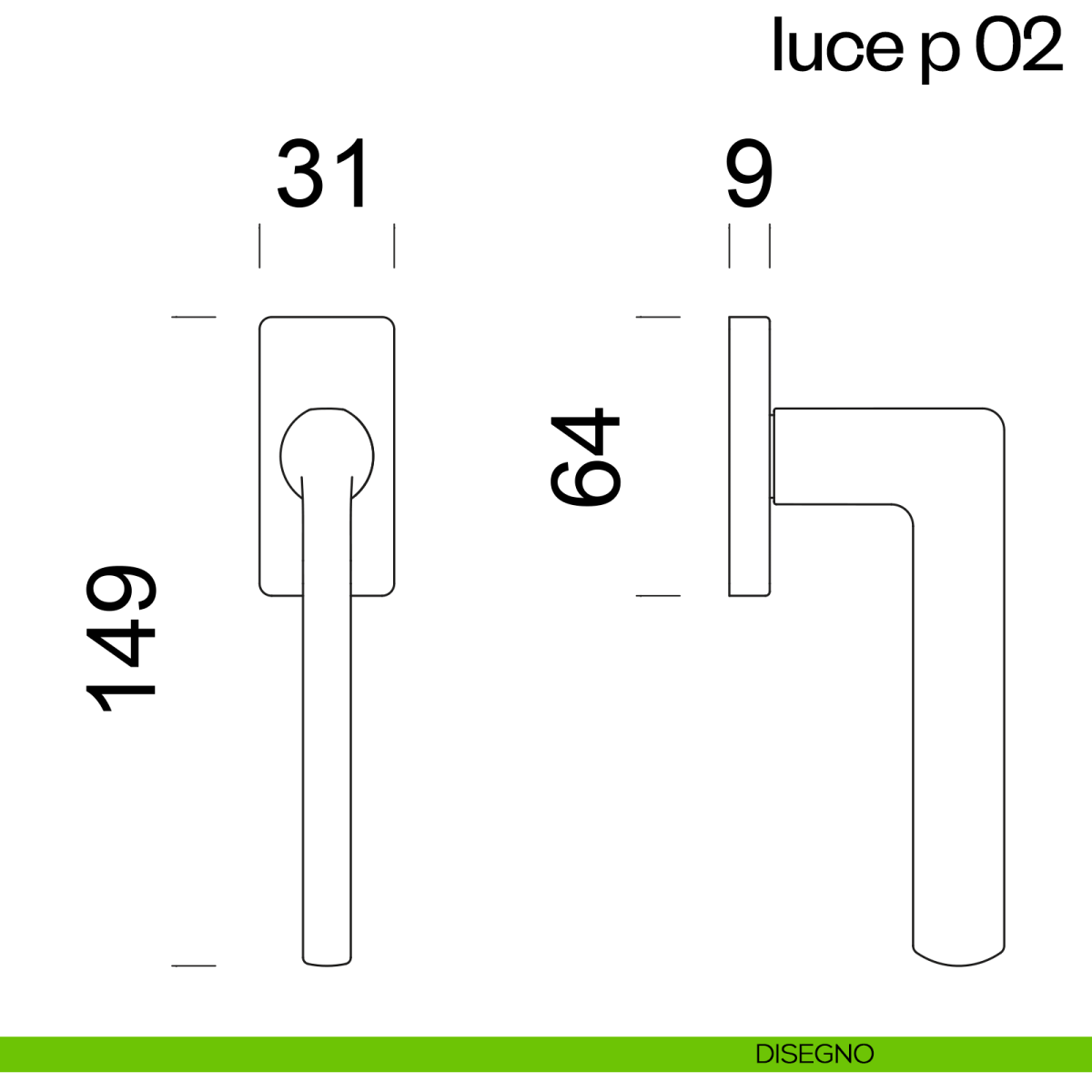 Maniglia per finestra martellina DK Luce P 02 dnd. Design by Dnd Technical Division.
