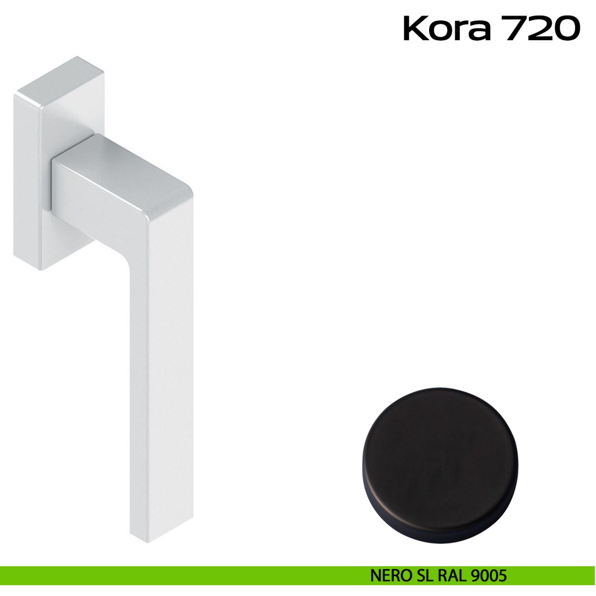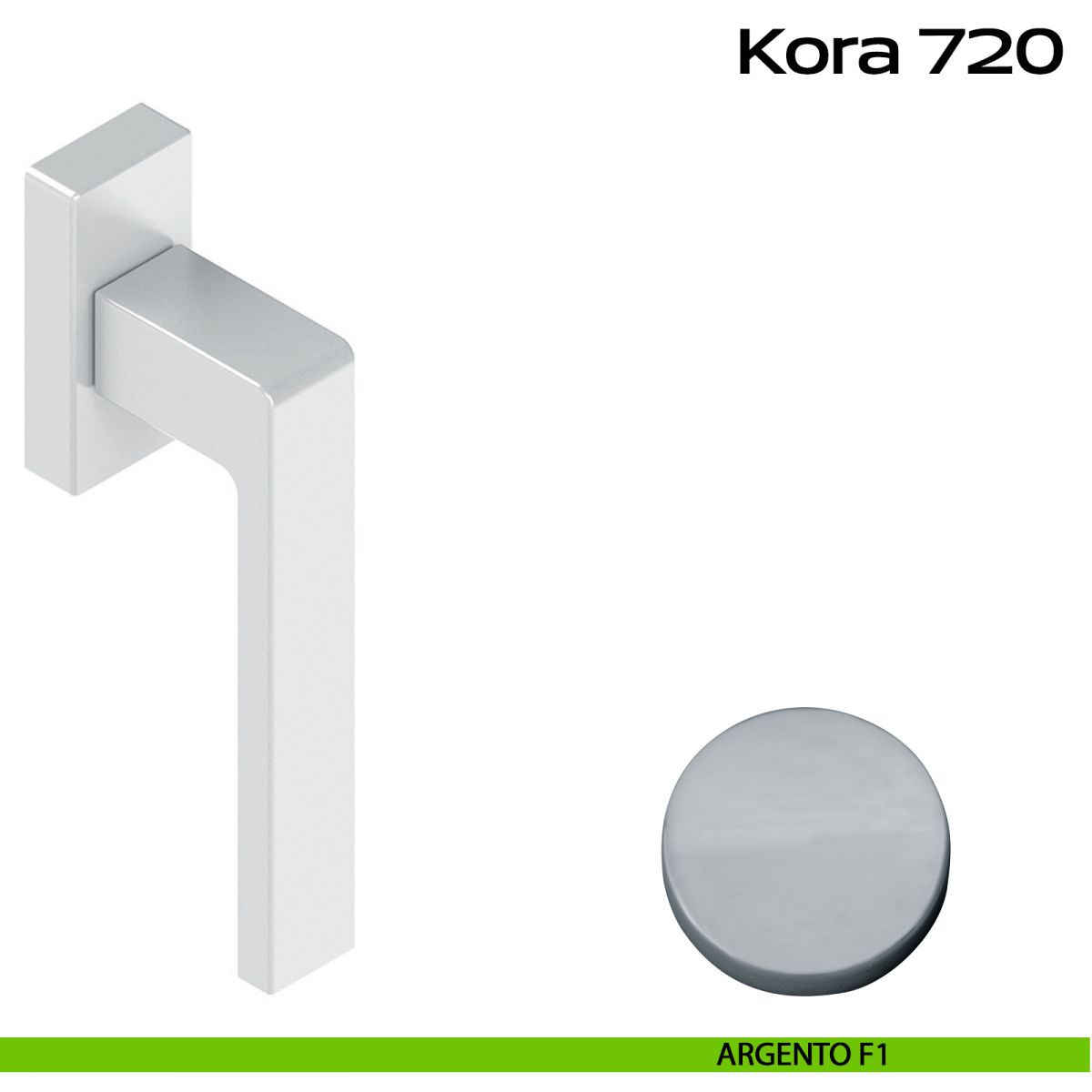 Maniglia in alluminio per finestra DK con rosetta e quadro 7x45 Kora 720 Reguitti. Design by Studio Reguitti.