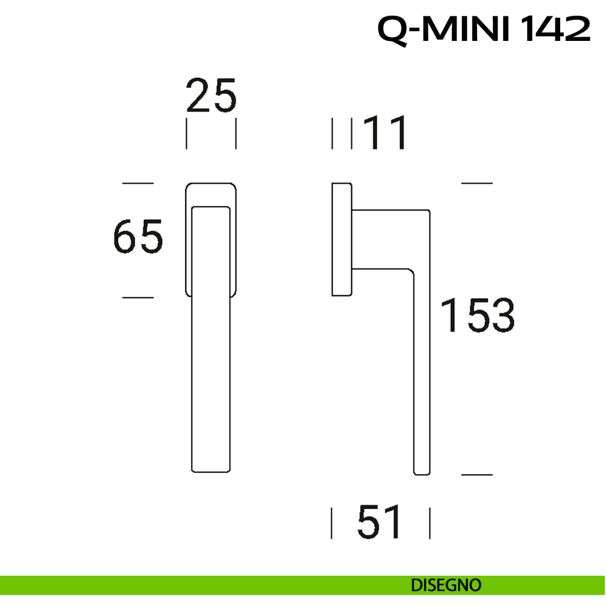 Maniglia per finestra martellina DK stretta Q-Mini 142 Reguitti. Design by Studio Reguitti.