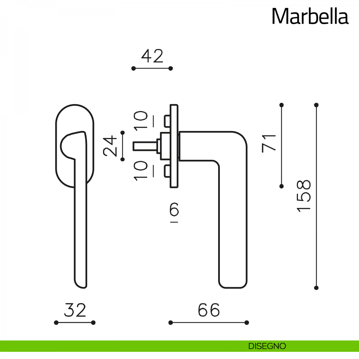 Maniglia per finestra martellina DK Marbella Olivari bassa.