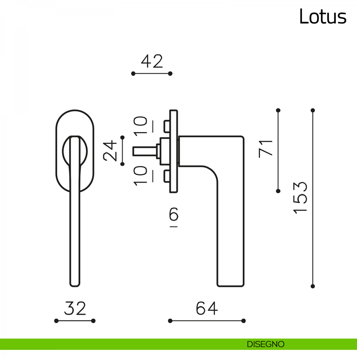 Maniglia per finestra martellina DK Lotus Olivari bassa. Design by Javier Lopez.