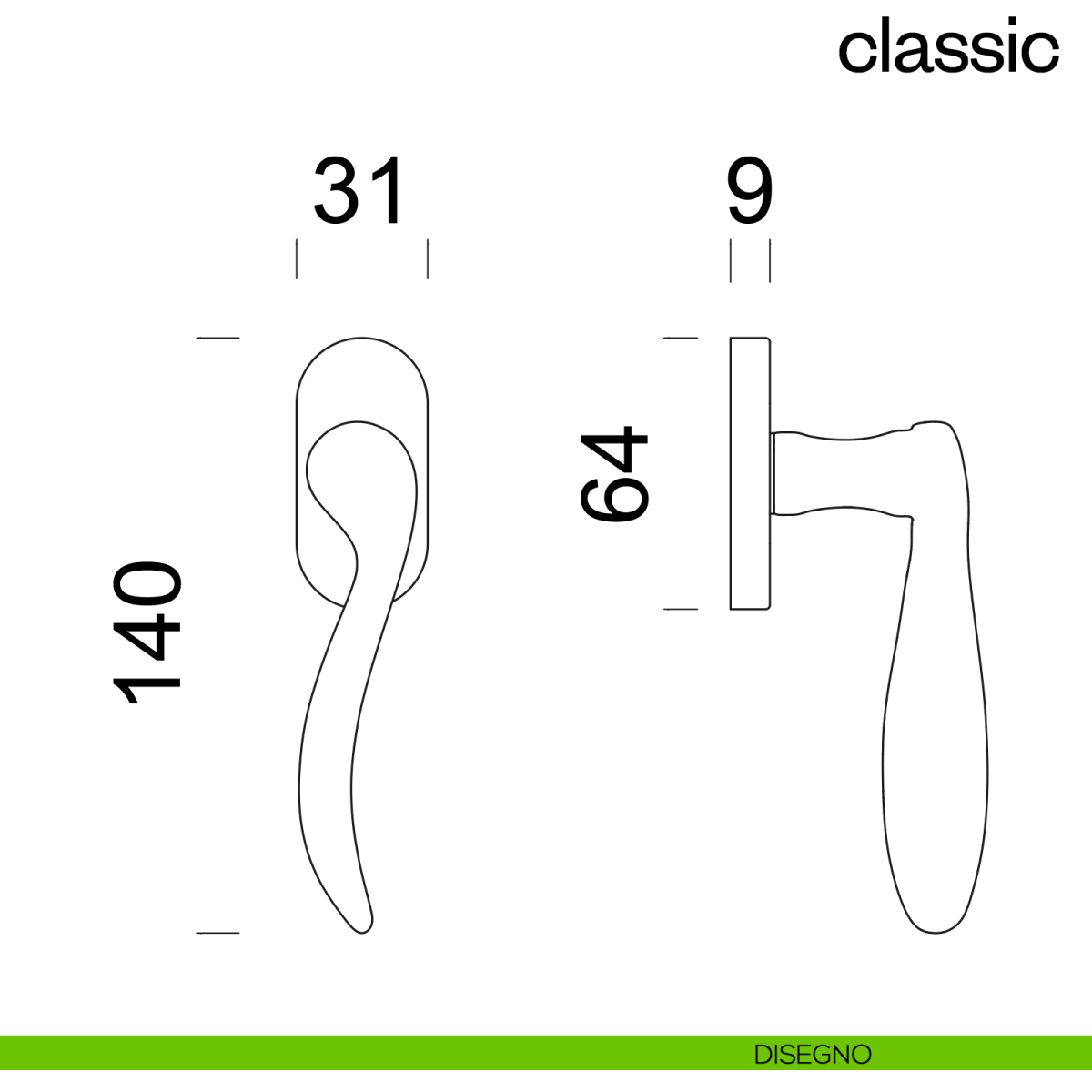 Maniglia per finestra martellina DK Classic dnd Handles. Design by Martinelli Lab.
