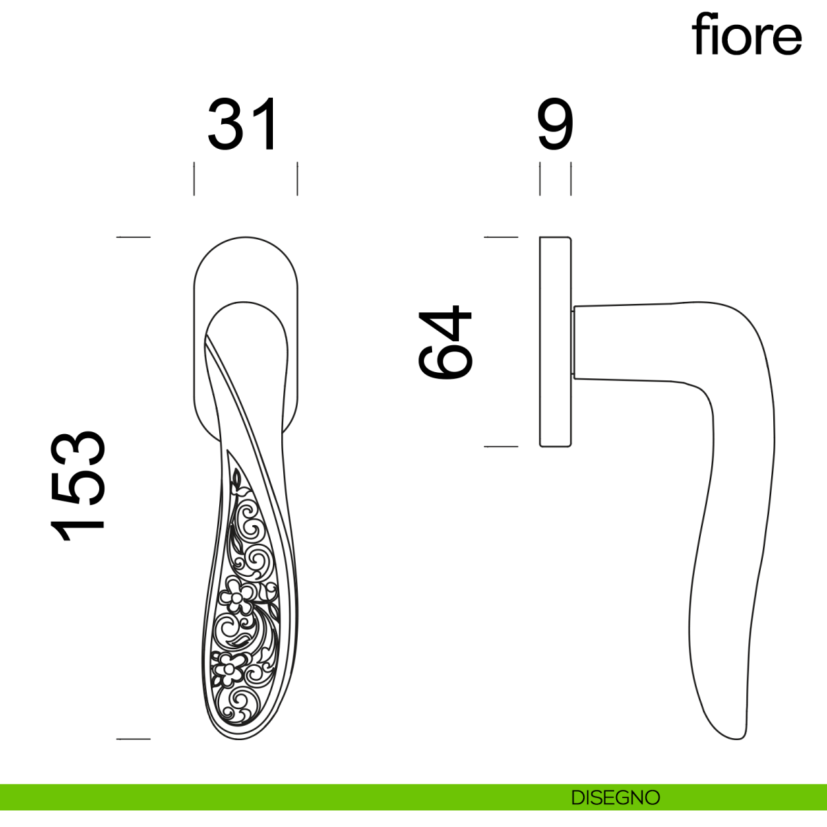 Maniglia per finestra martellina DK Fiore dnd Handles.