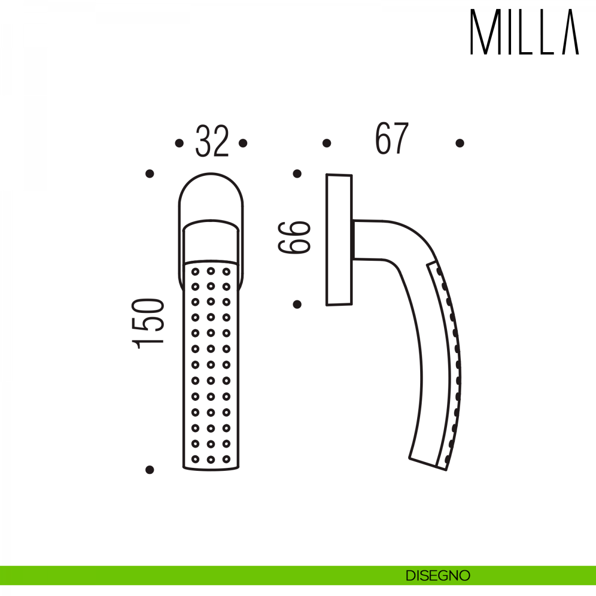 Maniglia per finestra martellina DK Milla Colombo Design. Design by Luca Colombo.