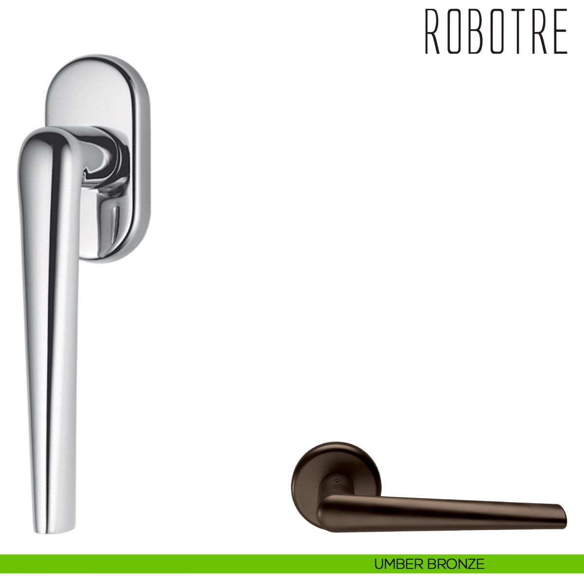 Robotre Colombo Design viene offerta anche nella variante cremonese per finestra e maniglia per porta interna. Scopri la gamma Robotre Colombo per completare con stile il tuo arredamento.