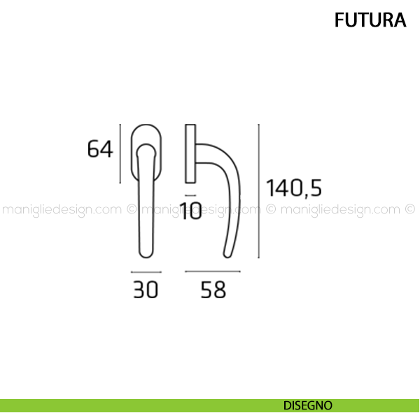 La maniglie per infissi esterni Futura è stata pensata per chi desidera una maniglia moderna dal costo contenuto. La maniglia Futura Comit appartiene alla serie di maniglie in ottone per finestre. Si tratta di un modello semplice, lineare e al tempo stesso decisamente contemporaneo e innovativo, adatto a poter interpretare al meglio le ultime tendenze del mondo del design. La maniglia in ottone cromato Futura è stata pensata per valorizzare ogni ambiente con un tocco di design Made in Italy.