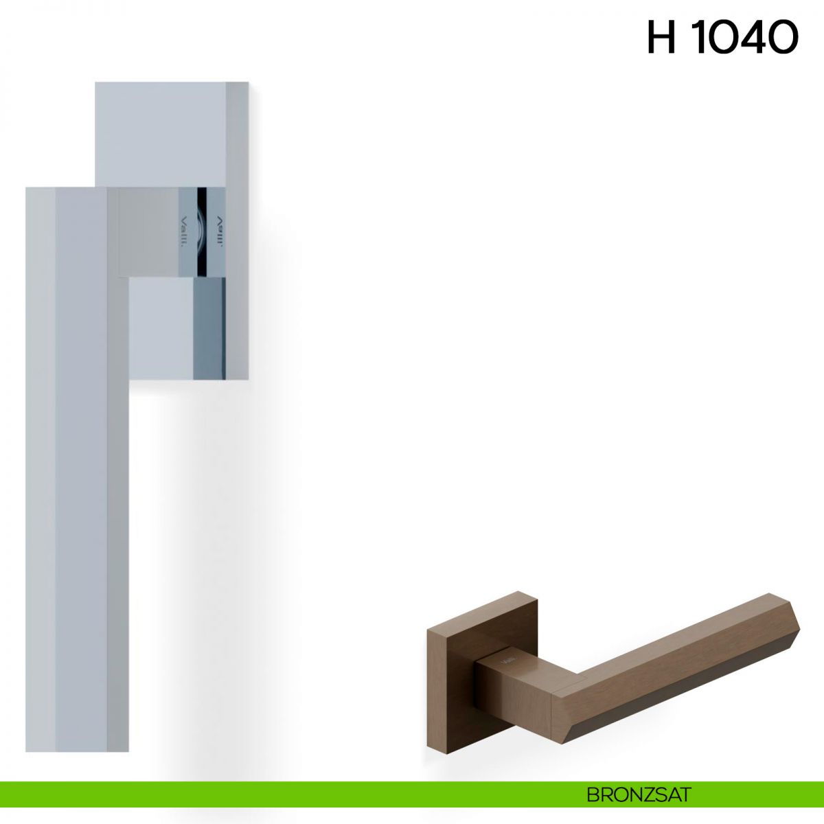 Maniglia per porta interna H 1040 Valli collezione Fusital con rosetta e bocchetta quadrata.