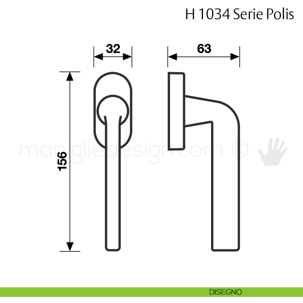 Maniglia per finestra cremonese H 1034 F Polis Valli & Valli.