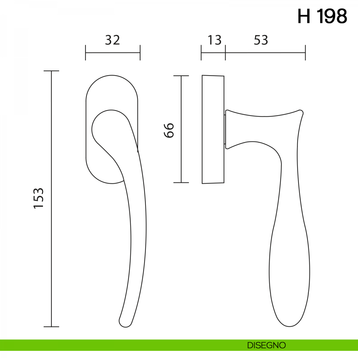 Maniglia per finestra martellina DK H 198 Valli collezione Fusital.