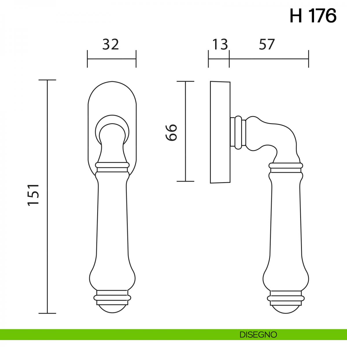 Maniglia per finestra cremonese H 176 Valli collezione Lab.