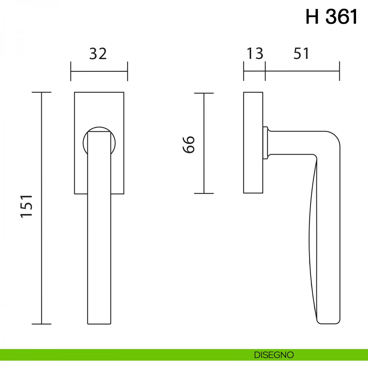 Maniglia per finestra martellina DK H 361 Valli collezione Fusital.