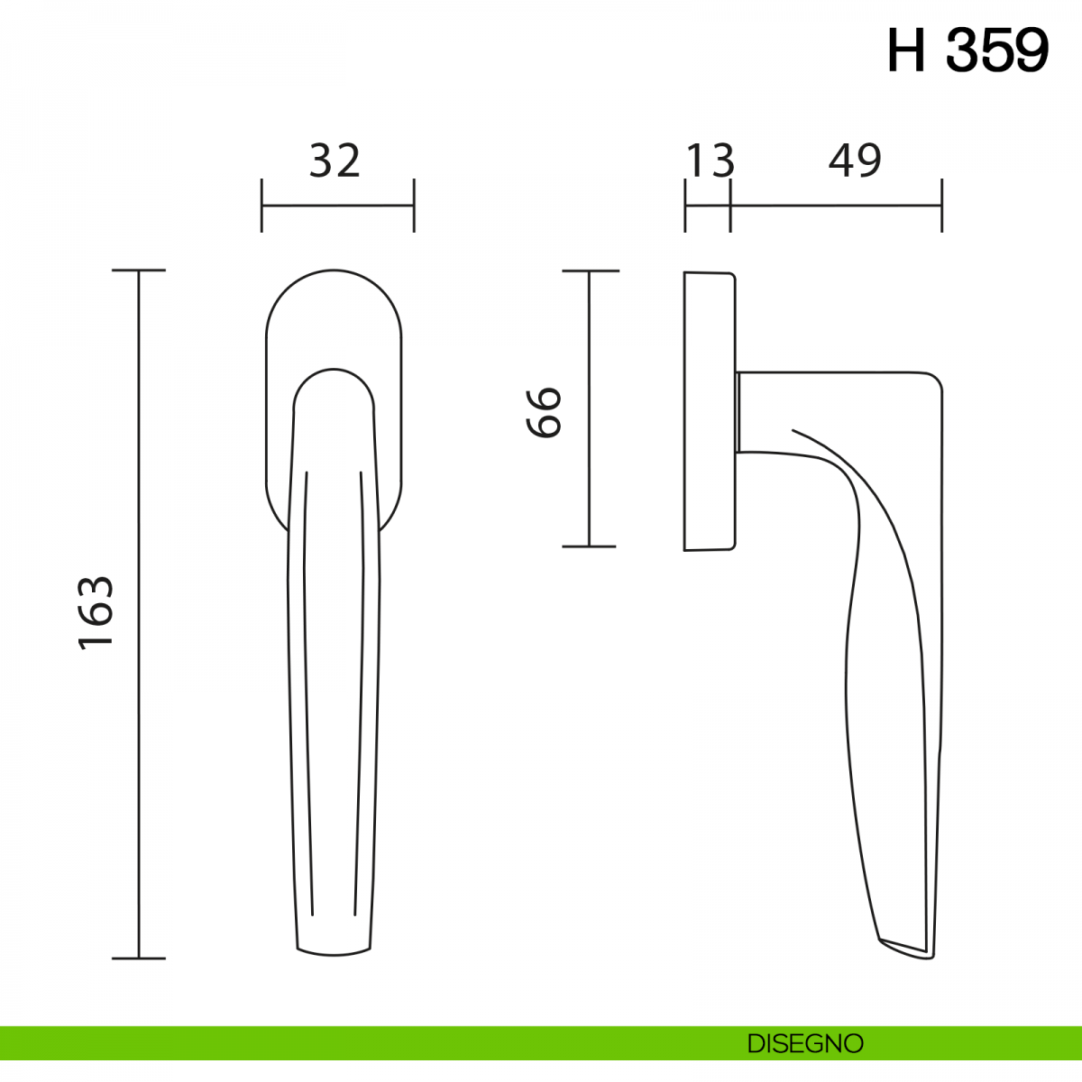 Maniglia per finestra martellina DK H 359 Valli collezione Fusital.